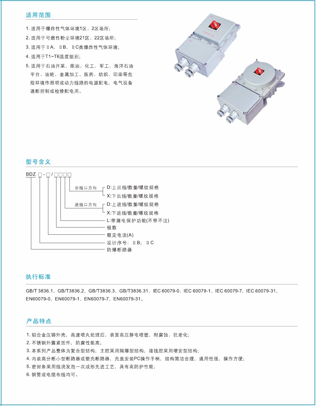 您的位置:首頁>產品中心>BDZ係列防爆斷路器