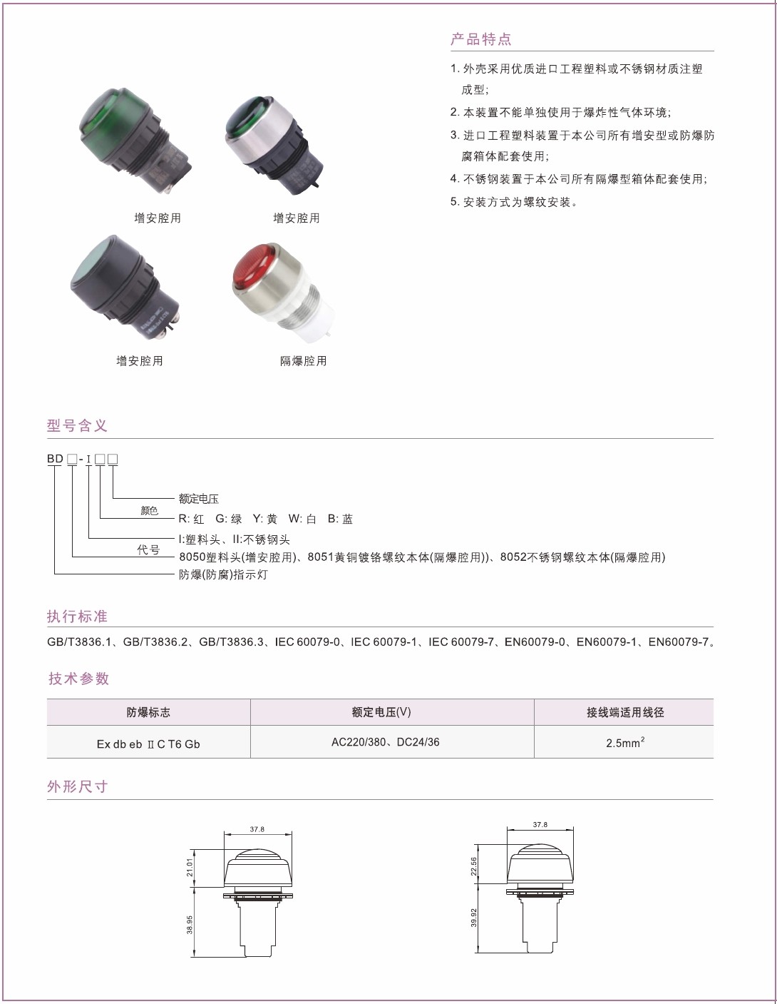 4.不鏽(xiù)鋼(gāng)裝置於本公司所有隔爆型箱體配套使用: