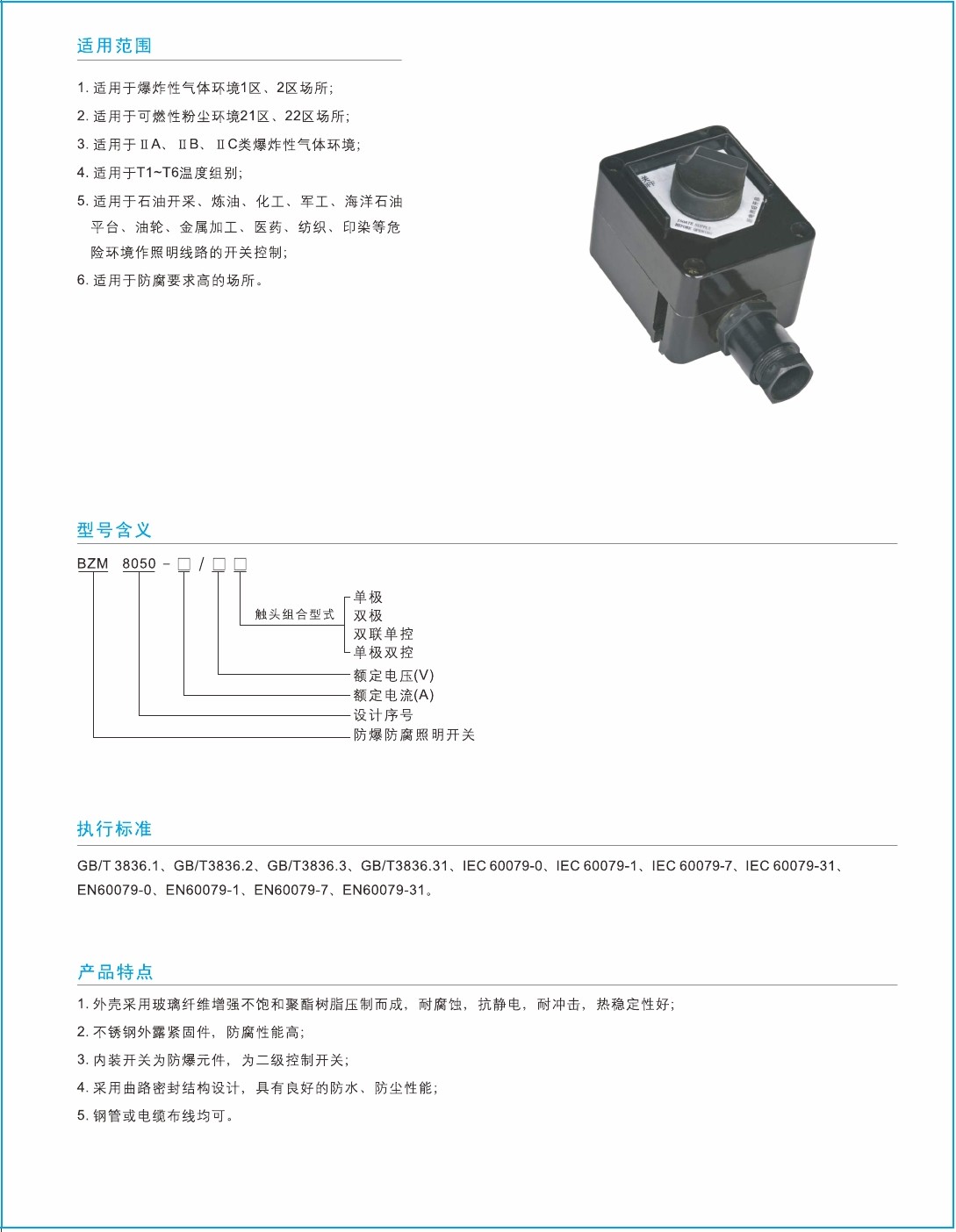 BZM8050係列防(fáng)爆防腐照明開關(guān)