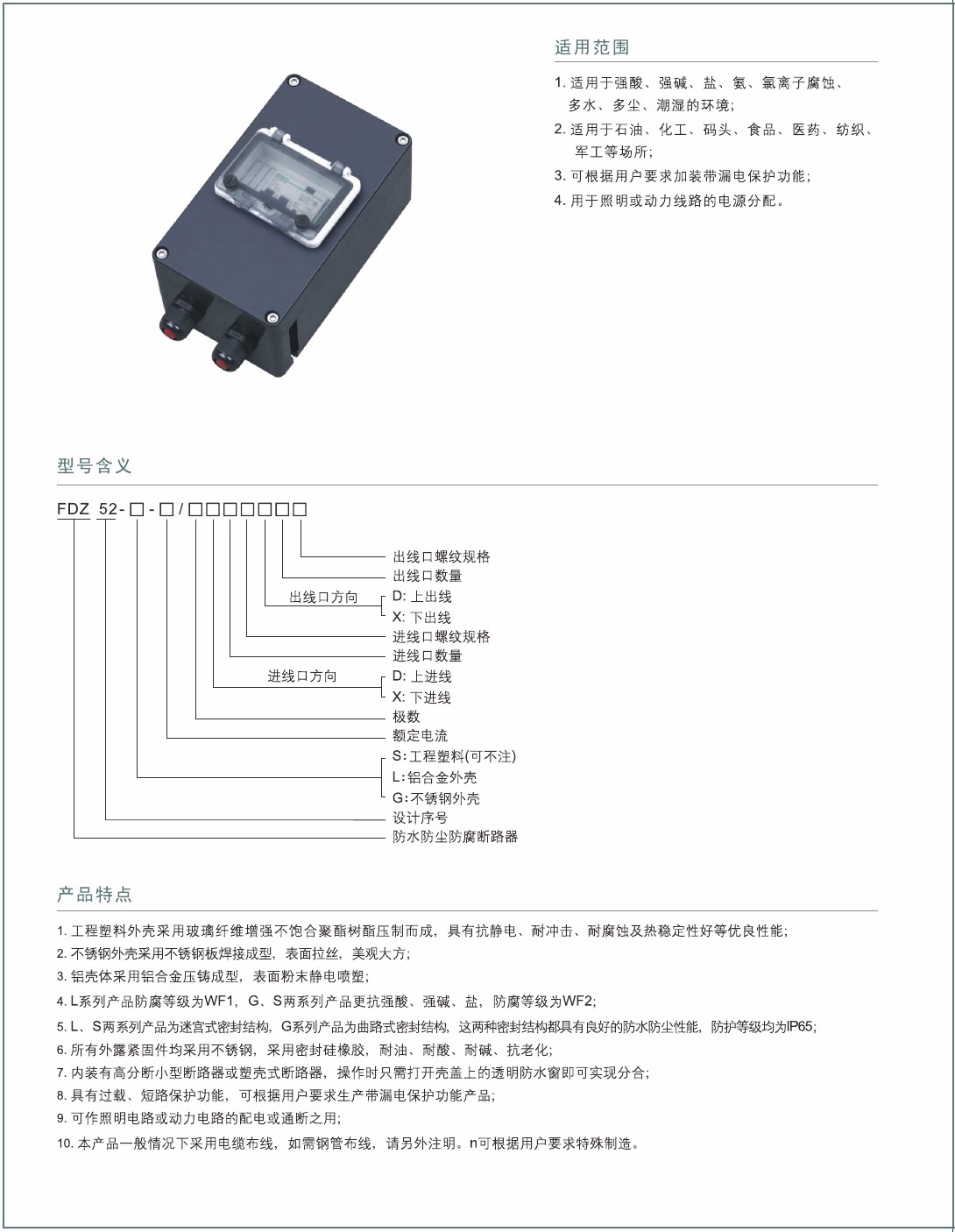 FDZ52係列防水(shuǐ)防塵(chén)防(fáng)腐斷路器