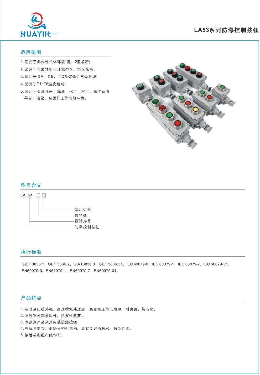 3.本係列產品整(zhěng)體(tǐ)為複合型結構,開關箱采用隔爆型結構(gòu),接線箱采用(yòng)增安型結(jié)構;